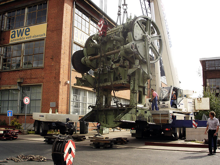 Umsetzen einer 90 Jahre alten Presse in Eisenach
