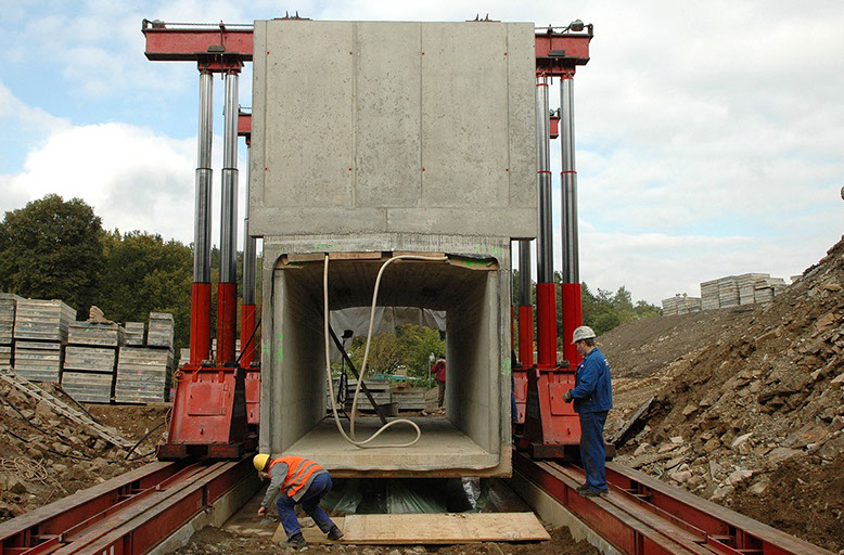 Verschub eines 110 t schweren Tunnelbauteiles