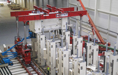 For years we have specialized in the assembly of presses, especially in the automotive industry. The professional and secure placement of heavy presses, components and machines requires a high amount of precision and experience as well as the application of the most up to date technology. We possess hydraulic lifting systems with a load of up to a maximum of 1,500t (at a height of 16.50m still 500t). With up to 240m rail system the loads can be moved lengthwise and can be moved diagonally with various cantilever systems. This enables application even where space is restricted on the sides or in height.